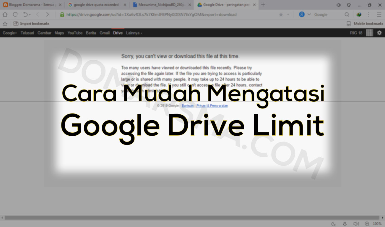 - Cara Mengatasi Google Drive Limit Notifikasi "Maaf, Anda ... , Masalahnya, Saya Tidak Dapat Mengunduhnya Karena Kuota Terlampaui Aliat Terlalu Banyak Orang Yang Mengunduh File Tersebut.